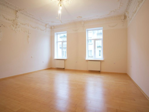 The apartment boasts two balconies: a front-facing one and a large balcony overlooking a cozy courtyard. The building has undergone thorough rehabilitation with a restored façade and a well-maintained courtyard. Featuring a blend of classic and modern style, the apartment preserves antique elements, intricate stucco work, and exquisite woodwork. The kitchen is equipped with high-end German cabinetry and appliances, while new premium parquet flooring and individual heating ensure comfort and elegance throughout.