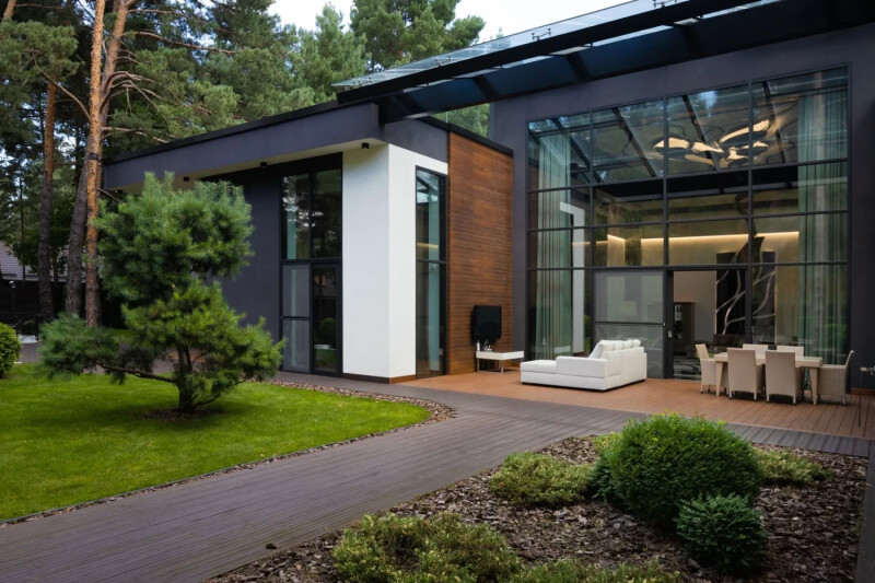 The house is decorated in a modern Art Deco style, marble floors, leather floors, parquet.